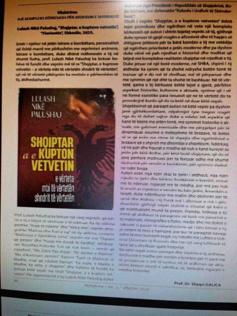 Lulash Nikë Palushaj, “Shqiptar, e kuptove vetvetin”, “Fiorientia”, Shkodër, 2025